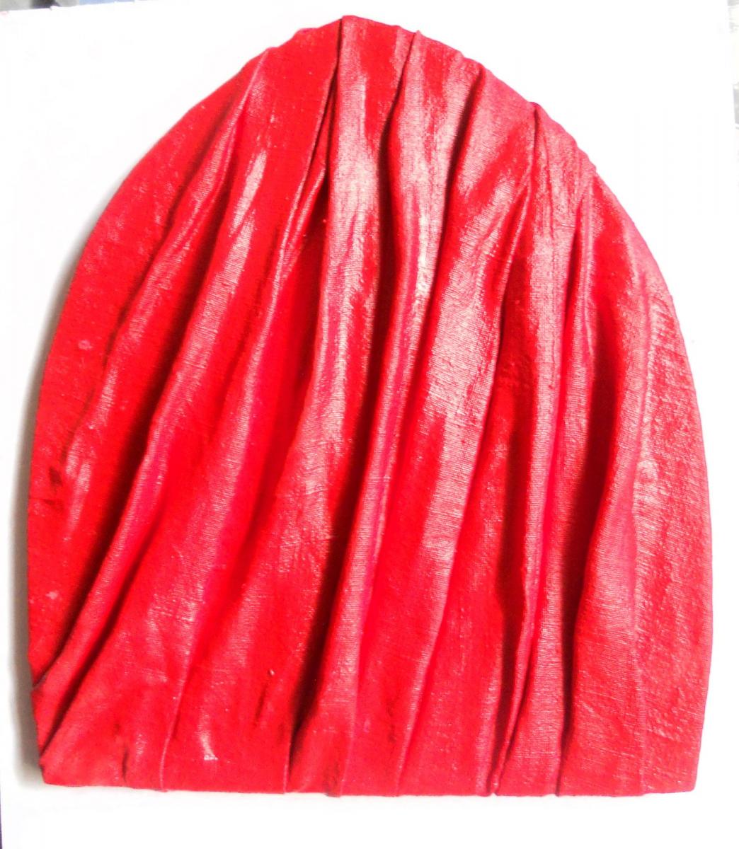 L'opera è una tela piegata in verticale dipinta ad acrilico. La forma è quella ad arco a sesto acuto, fissata sul supporto bianco. Icona rossa può essere acquisita anche senza supporto, solo la forma classica dell'Icona. Questa forma, tipica dell'icona religiosa include un aspetto concettuale che mira al trascendente. Il colore rosso e le piegature della tela conferiscono all'opera solennità e un senso evocativo che fanno riflettere. Buona emozione.